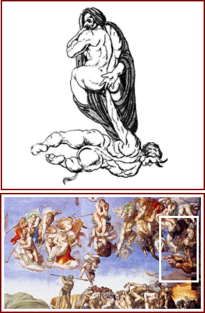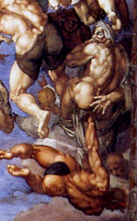 The lower right-hand quadrant of Michelangelo's The Last Judgement inside the Sistine Chapel supposedly portrays a sodomite being fisted. At least that's what some individuals have anachronized. Technically, it's some heavy-duty ball yanking; but I'll let you decide.